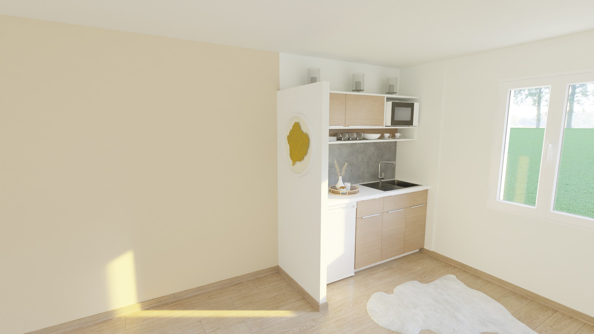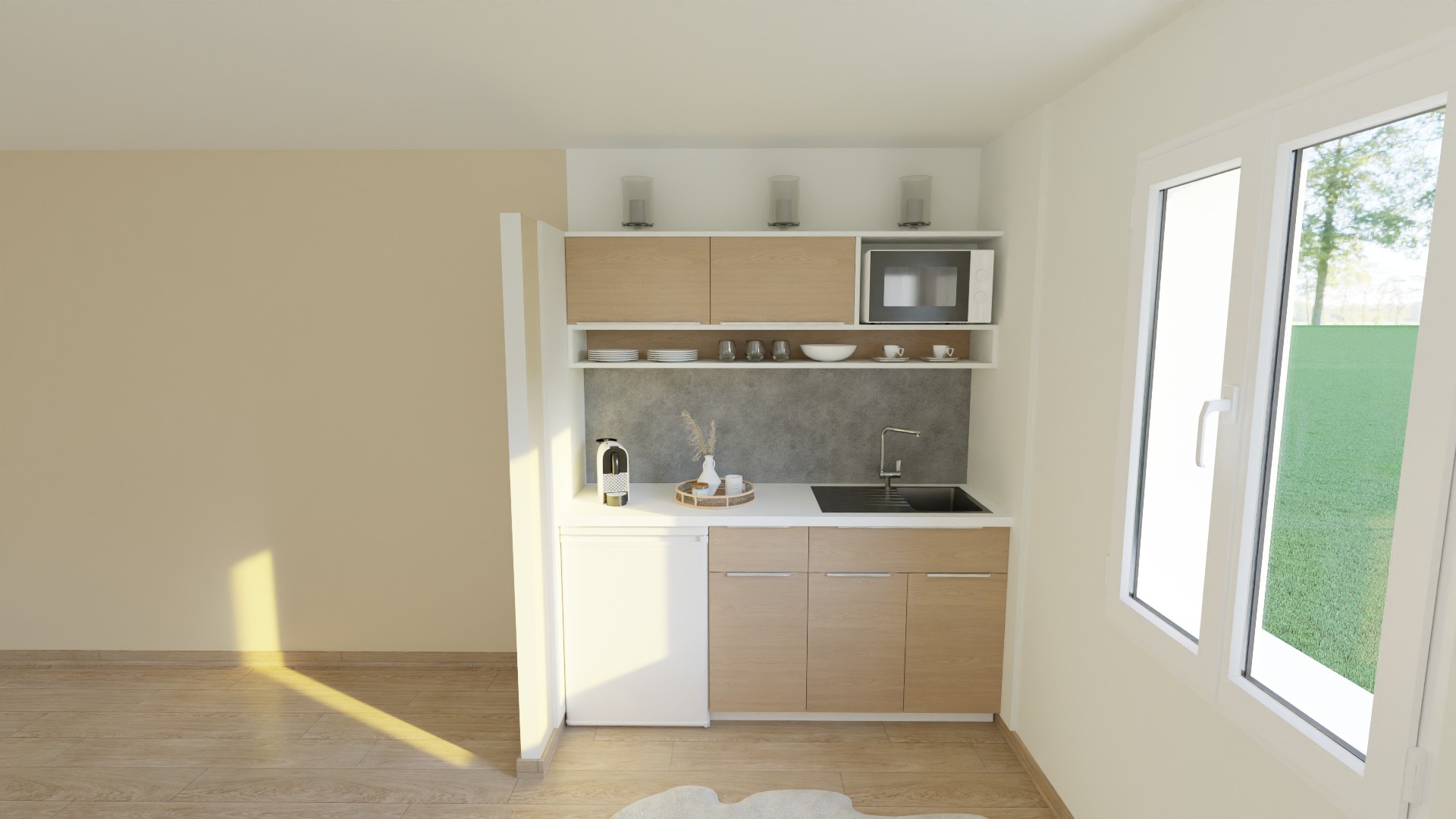 • Cuisine simple : caisson cuisine + panneaux d’aménagement